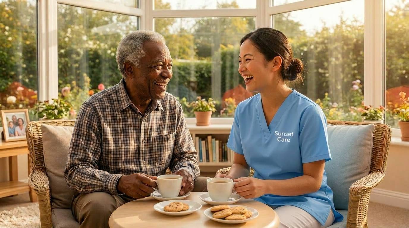"After my husband died, I felt so alone. My companion from Sunset Care visits twice a week and we've become genuine friends. She's brought joy back into my life."