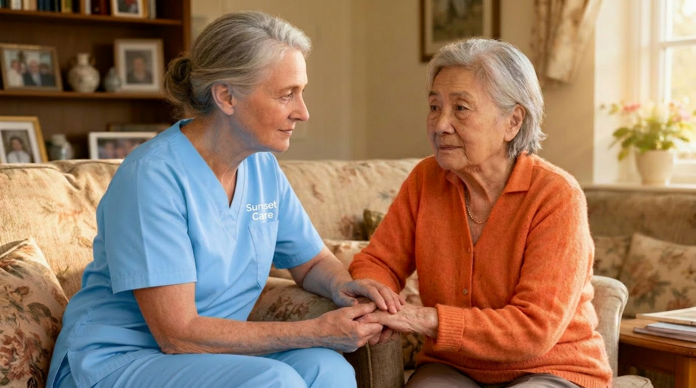 "As a family carer, I was exhausted. The dementia-trained carers from Sunset Care gave me respite whilst providing Mum with specialist care I couldn't manage alone."